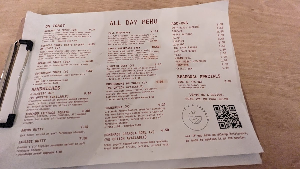 Welcome to Fig Sparrow, an independent café nestled in the heart of Manchester. Located at 20 Oldham St, this vibrant spot offers a delightful menu that captures the essence of brunch culture. Renowned for its artisan coffee and exceptional customer service, Fig Sparrow creates an inviting atmosphere perfect for relaxation or socializing.